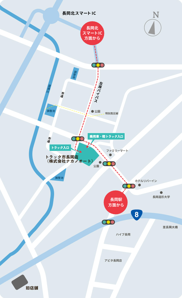 長岡バイパス・国道8号線を経由し約10分 - 長岡駅から